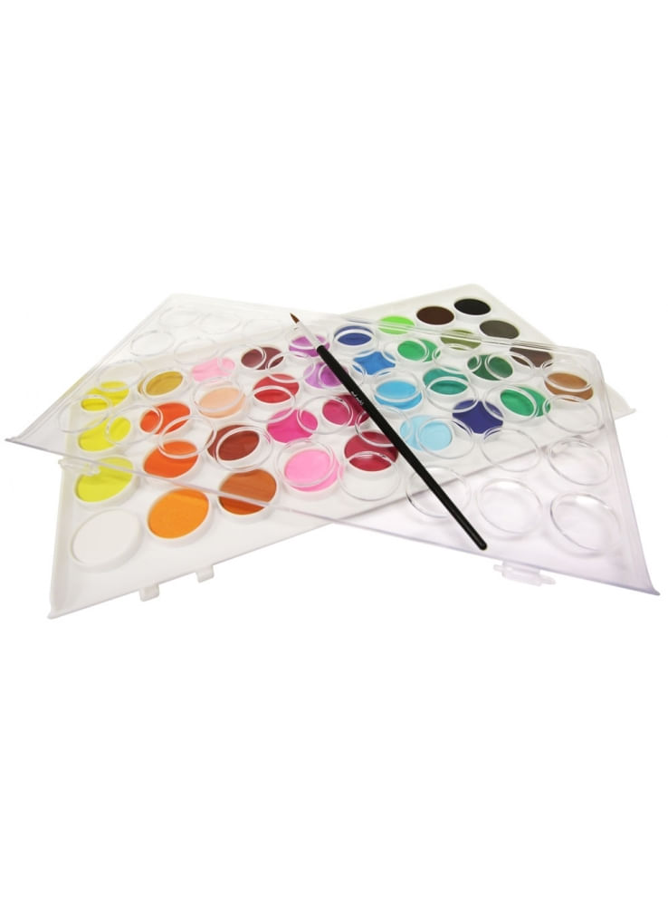 36 pastillas de acuarela en una vibrante gama de colores, incluyendo tonos vivos y pastel