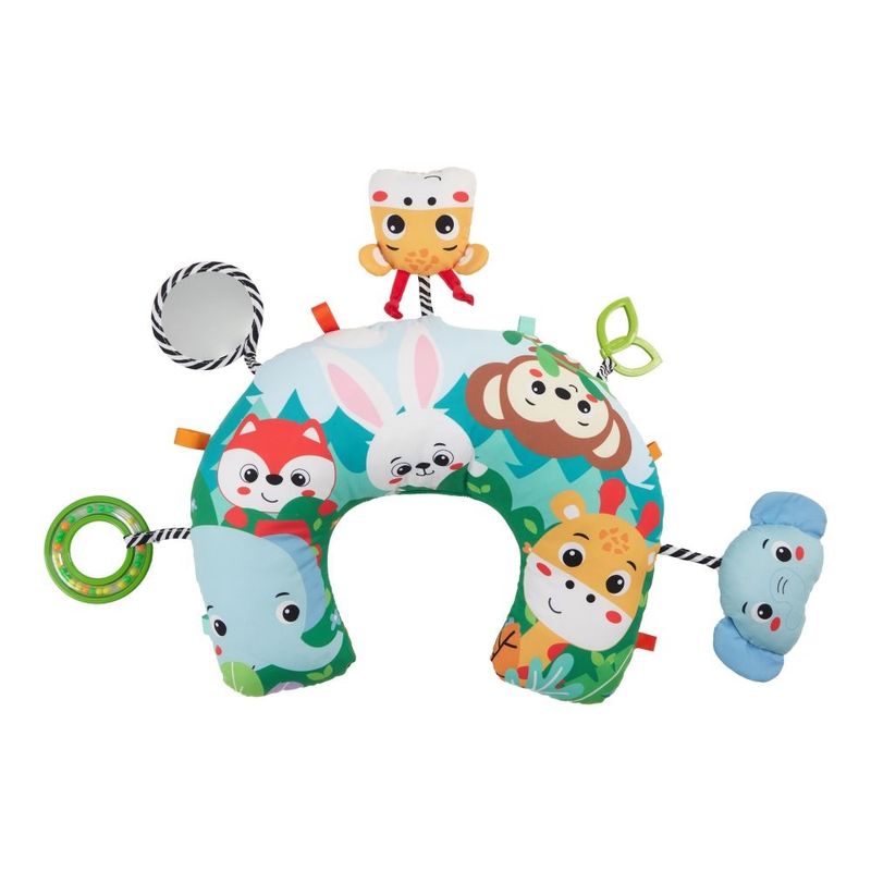 Almohada bebe Tummy Time 4 juguetes colgantes
