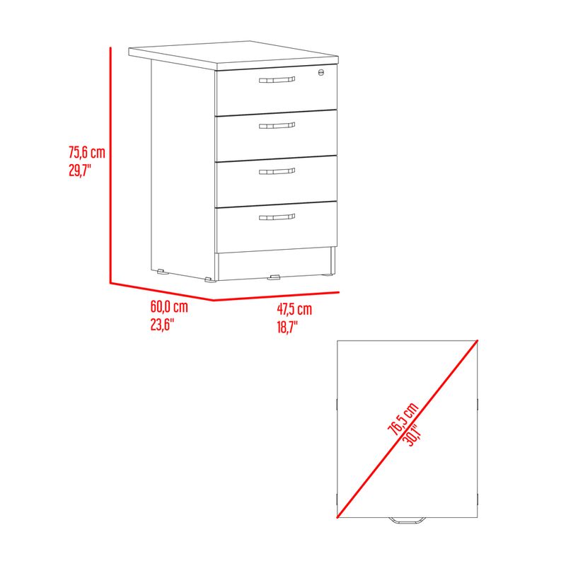Archivero 4 cajones 76x48x60cm nogal/wengue