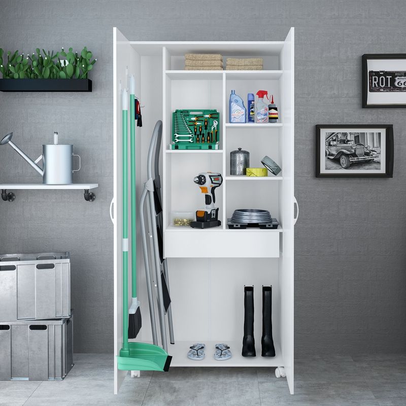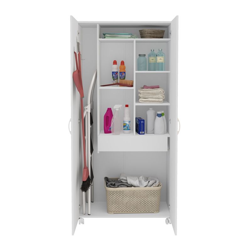 Organiza tu ropa de manera muy fácil y cómoda con el armario multiusos São Paulo. Con él podrás deshacerte de cubos, escobas, toallas, escaleras, palas, escurridores, aspiradoras y muchos otros objetos que siempre son arrojados por la lavandería. Tiene un cajón interno para guardar multitud de cosas y también cuatro ruedas súper prácticas, que te permiten moverlo, facilitando la limpieza de la ropa.
