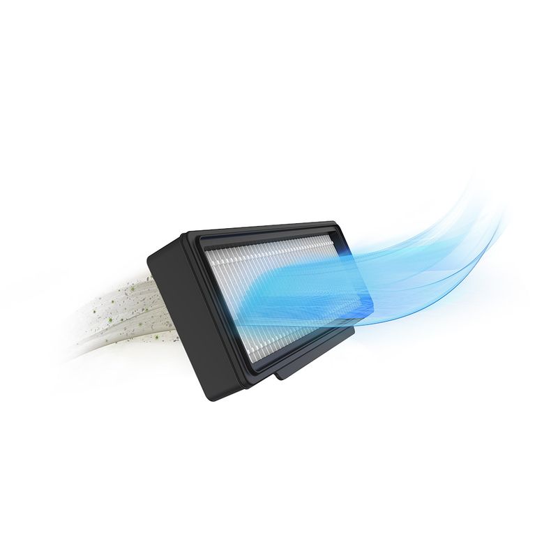•Tiempo de duración de batería: 2h20min •Capacidad total de depósito: 310ml •Filtro HEPA Allergy Protect •Diseño Ultra Slim •Sensor Anticaídas •Control remoto •Paño de microfibra •Escobas laterales •Base de cargador