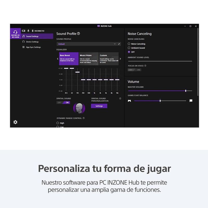Nuestro software para PC INZONE Hub te permite personalizar tu experiencia con los INZONE H3 mediante la personalización de una amplia gama de funciones, incluidas varias opciones de sonido y hardware. Utiliza la función EQ y ajusta con precisión las frecuencias de sonido de tu juego para disfrutar de más claridad e inmersión.