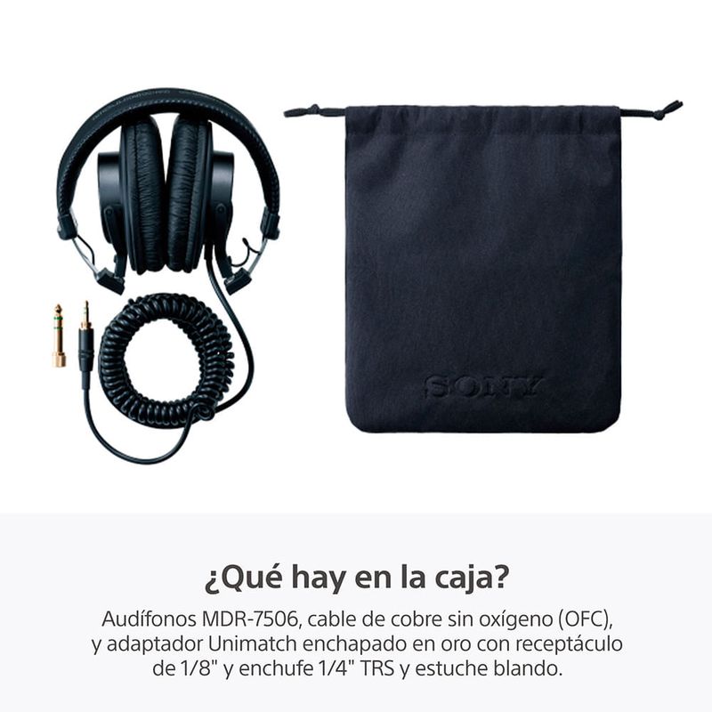 Los MDR-7506 son audífonos con alta calidad extrema. Son ligeros y se diseñaron para brindar la máxima comodidad durante extensos períodos de uso, por lo que son ideales para transmisiones y estudios. Un diafragma PET de 40 mm y un imán de neodimio proporcionan el rendimiento que supera los requisitos de fuentes digitales, como CD, MD y DAT.