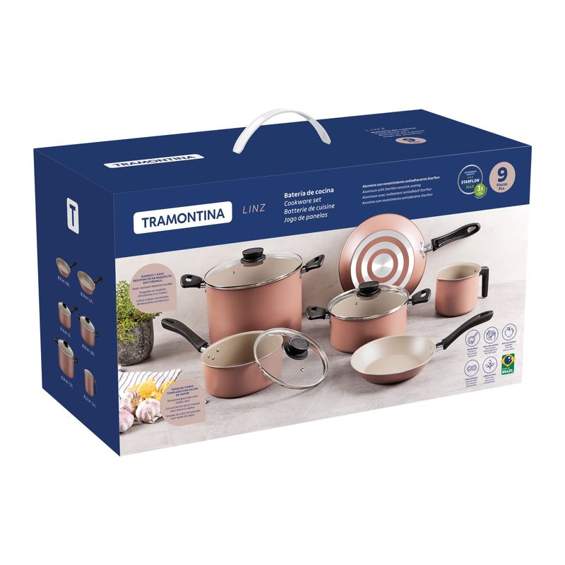 HogarMenaje CocinaBaterías de CocinaBateria de cocina 9pzas linz mocaccino