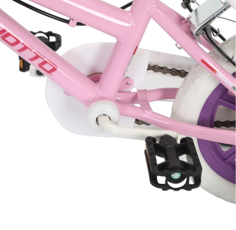 Bicicleta BENOTTO Infantil ALMA aro12, 1 velodidad. Para Niña Frenos Caliper Llanta EVA, Ruedas Laterales Acero Rosa
