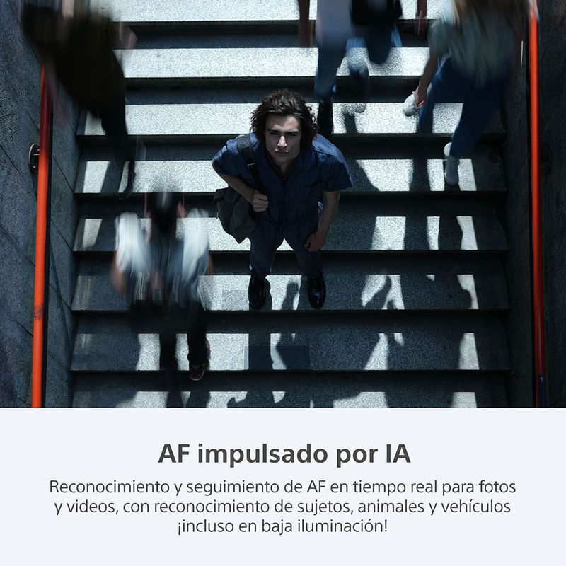 Con su innovadora unidad de procesamiento con inteligencia artificial, la a7C II puede reconocer con precisión el movimiento humano. La tecnología de estimación de la postura humana reconoce no solo los ojos, sino también las posiciones del cuerpo y la cabeza con alta precisión, lo que permite fijar y seguir a un sujeto de espaldas a la cámara o con el rostro parcialmente oculto.
