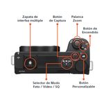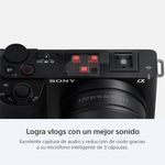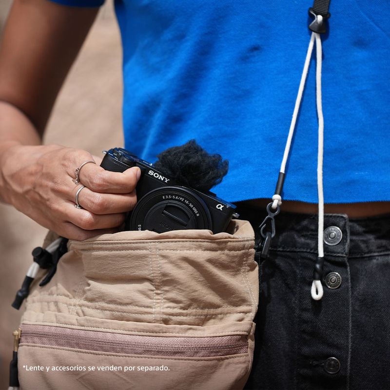 La ZV-E10 II mide solo 67,5 mm (2 3/4 pulgadas) de alto por 114,8 mm (4 5/8 pulgadas) de ancho por 54,2 mm (2 1/4 pulgadas) de profundidad y pesa solo 292 gramos27 (aprox. 10,3 oz): un logro notable para una cámara que utiliza una batería NP-FZ100 de alta capacidad. Su sujeción y sensación están mejoradas gracias a una empuñadura con textura y forma especial. Una empuñadura de captura con control remoto inalámbrico opcional (GP-VPT2BT) incluye controles de zoom y captura que son fáciles de usar al capturar con una sola mano y también se puede utilizar como trípode cuando quieres tener las manos libres para hacer reseñas de productos o capturas a distancia.