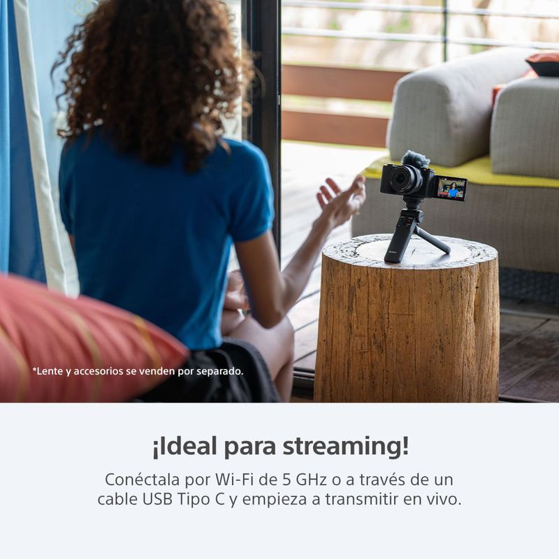 La ZV-E10 II admite Wi-Fi de 5 GHz22, lo que lo hace ideal para transmisión inalámbrica en vivo. El puerto SuperSpeed USB 5 Gbps (USB 3.2) Type-C® también permite la transferencia por cable de alta velocidad a un smartphone23 o una PC para posproducir y compartir en plataformas de redes sociales fácilmente.