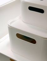 Descripción: Caja organizadora con diseño minimalista y formas rectas, ideal para optimizar espacios y almacenar diversos artículos.