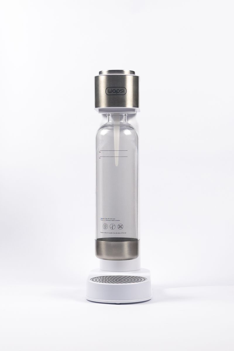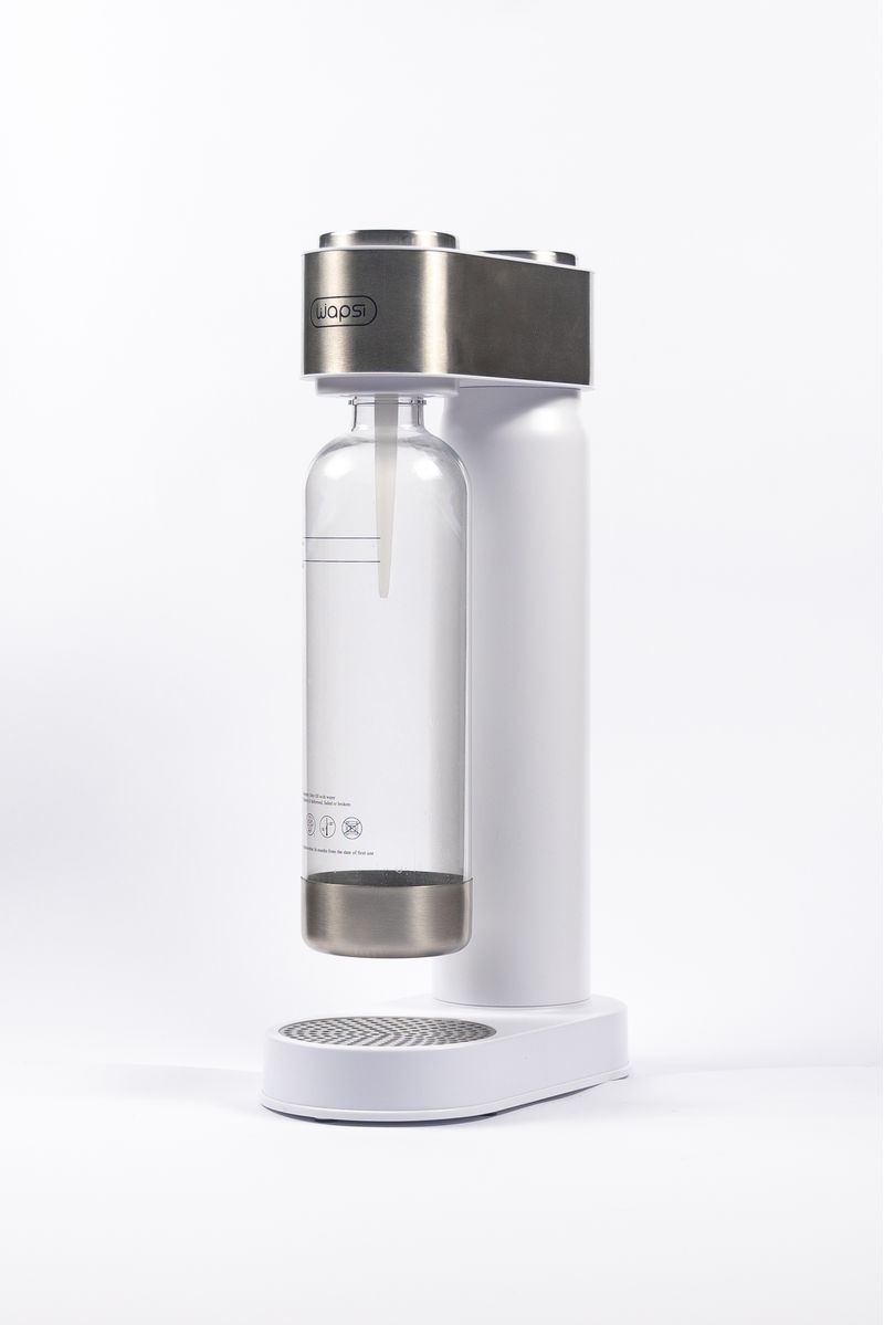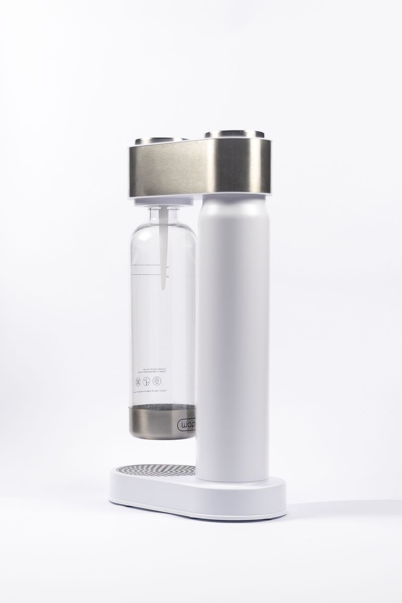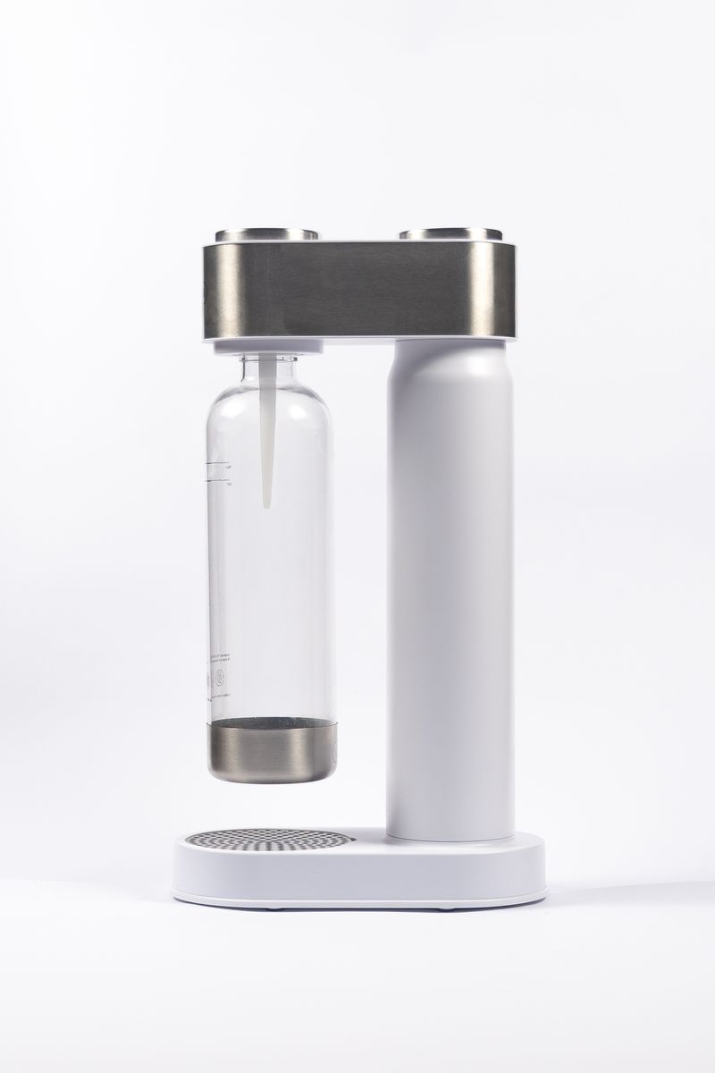 Carbonatador de agua, en colores blanco y negro. Peso 3,2 kg. Medidas 42 x 12 x 23 cm