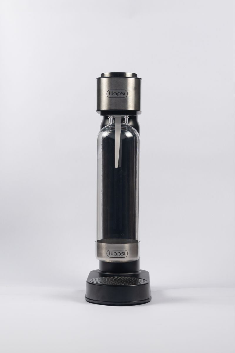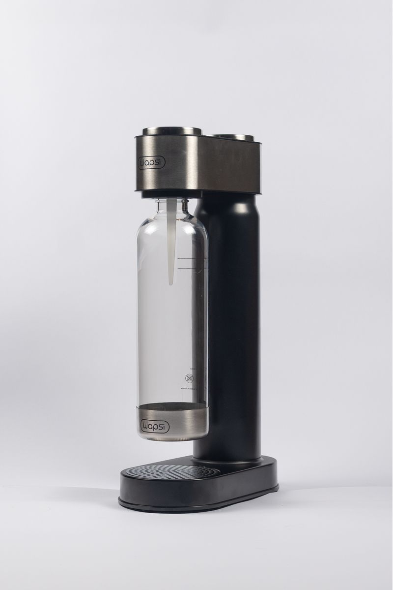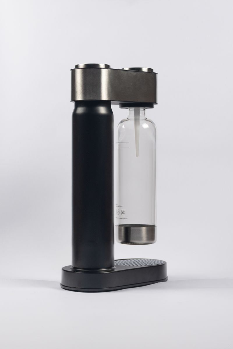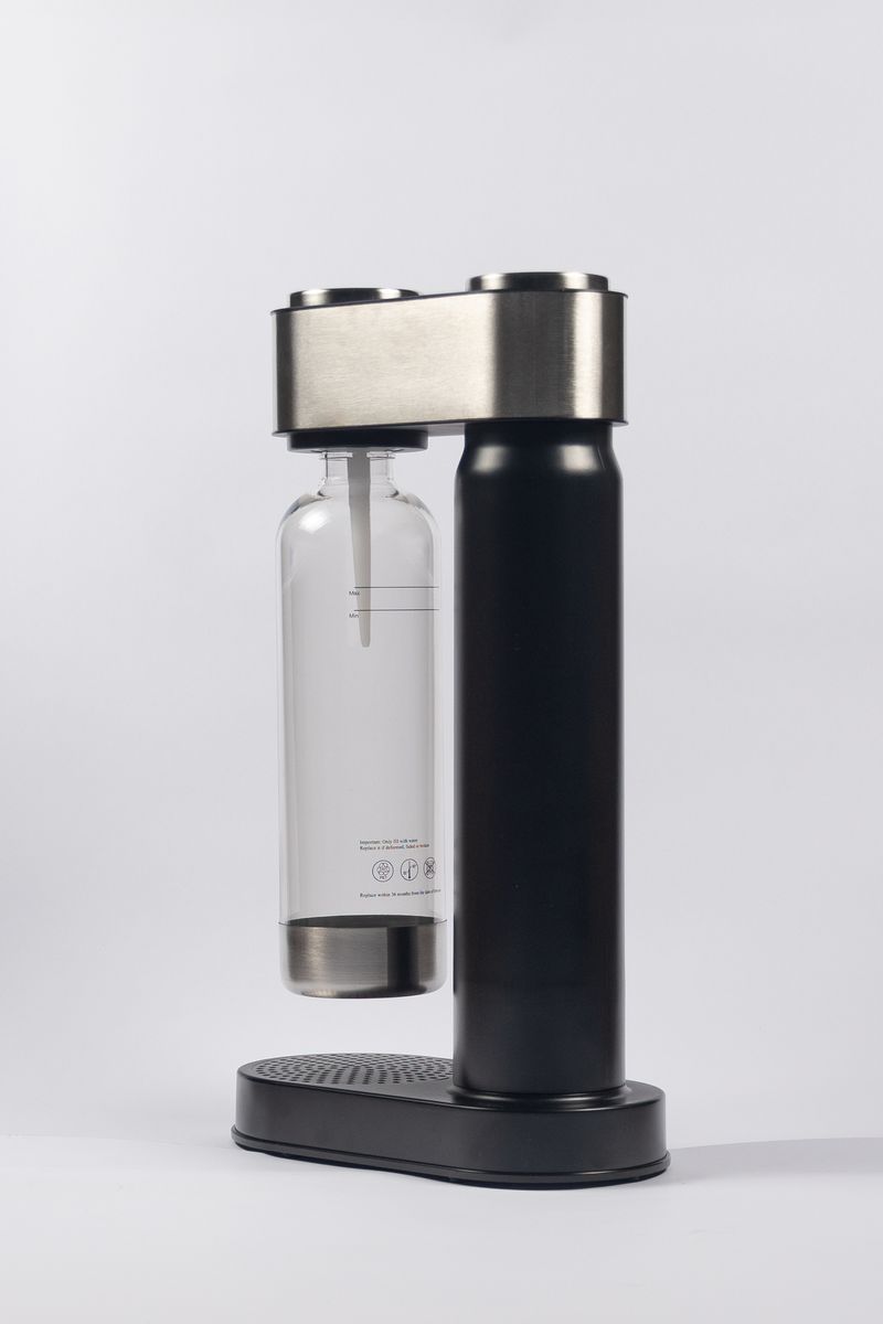 Carbonatador de agua, en colores blanco y negro. Peso 3,2 kg. Medidas 42 x 12 x 23 cm
