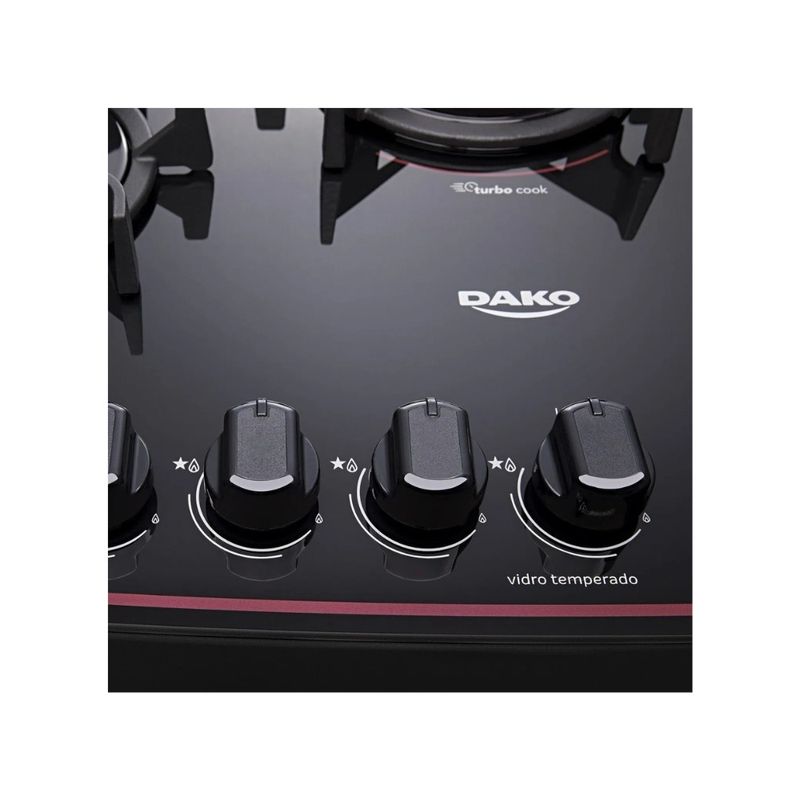 La Cocina Cooktop a gas Dako Supreme Negra Glass 5H de 75 centímetros está diseñada para transformar cualquier cocina en un espacio elegante y funcional. Con un acabado en vidrio negro de alta calidad, esta cocina combina modernidad, resistencia y un estilo sofisticado que se adapta a entornos contemporáneos y minimalistas.