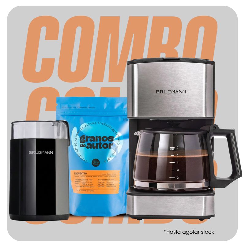 Combo - Cafetera de goteo inox 800 ml + Molinillo Brügmann + 1 Café Granos de Autor