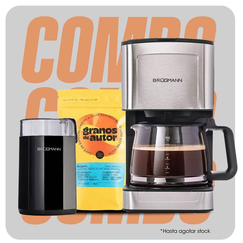 Combo - Cafetera Eléctrica 1.2 Lts + Molinillo Brügmann + 1 Café Granos de Autor