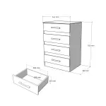cuatro amplios cajones que permiten organizar ropa, accesorios y objetos personales