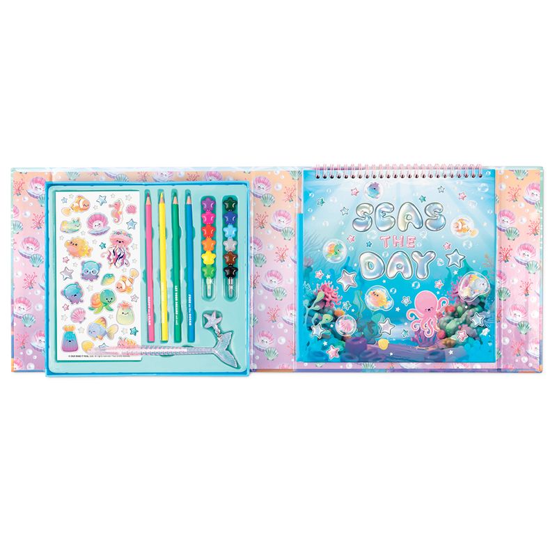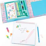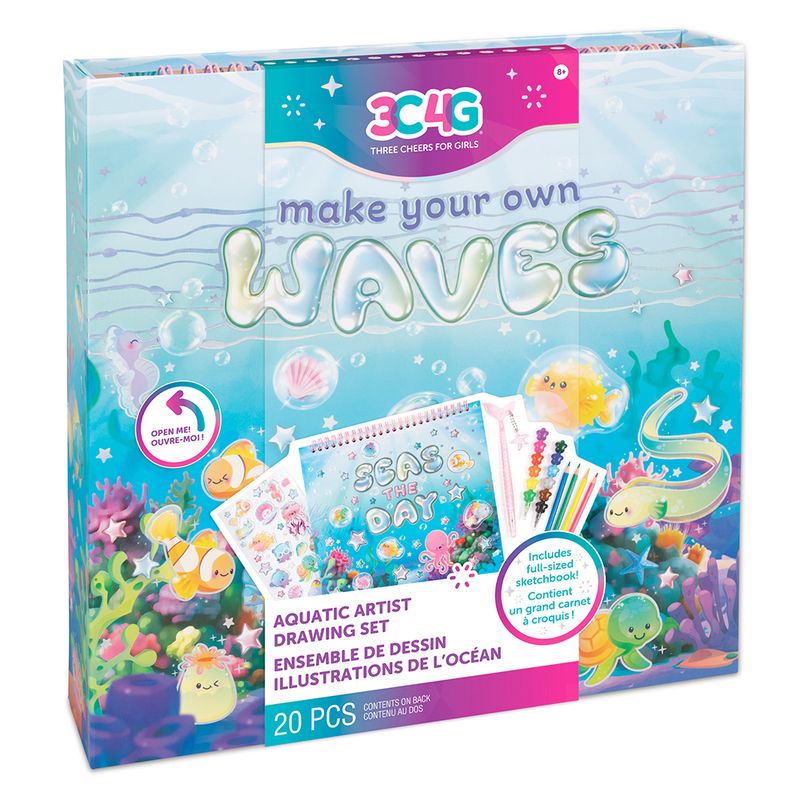 Este set de temática acuática permite a los niños guardar sus bocetos y artículos de papelería juntos en una preciosa caja reutilizable con cierre magnético. Un cuaderno de dibujo, ceras apilables en forma de estrella de mar, lápices de colores y pegatinas harán que los corazones jóvenes se desorienten. Con "Make your own waves" adornando la vibrante portada, este set completo seguro inspirará creatividad y autoexpresión en artistas emergentes. Guarda todos los materiales del artista directamente en la caja entre sesiones creativas, o lleva este set fácilmente para llevar. Esto es una idea de regalo ideal para jóvenes creativos, ya sea por una fiesta, un cumpleaños o simplemente porque sí. Perfecto para niños de 8+ años.