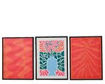 Sumérjase en la vibrante elegancia con este exquisito juego de tres cuadros decorativos, una sinfonía de color y forma