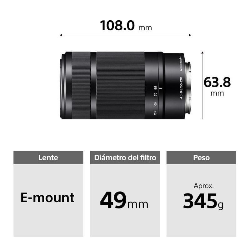 Montura tipo E, formato APS-C, Lente de zoom teleobjetivo, Estabilización de SteadyShot óptico