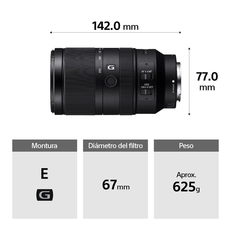 Montura E, formato APS-C, Lente G con superteleobjetivo zoom de 5x, Diseño compacto y alta resolución
