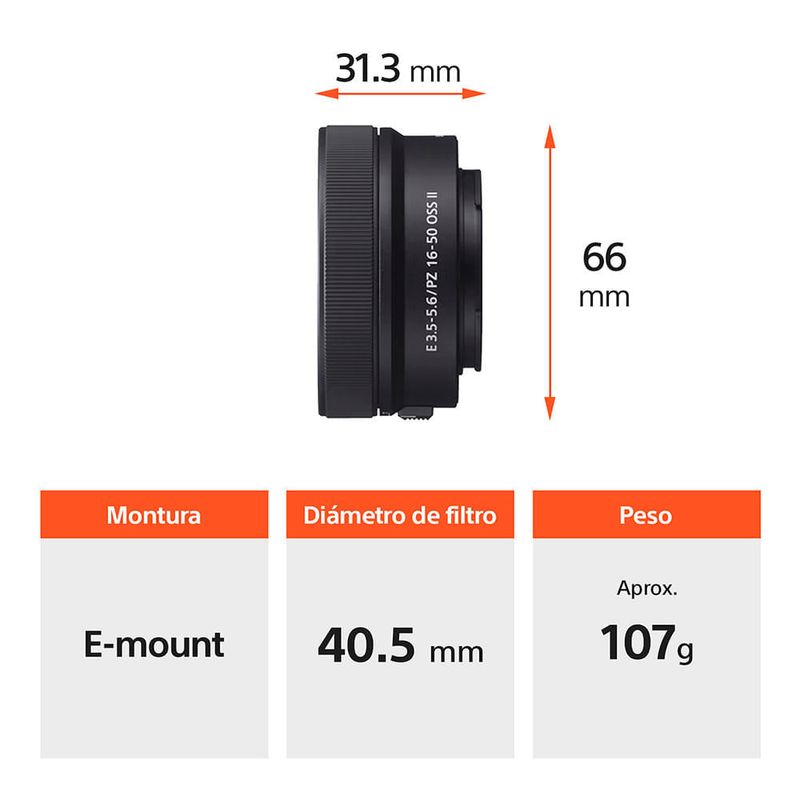 Montura tipo E, formato APS-C, Lente de zoom estándar, Potente zoom, perfecto para video
