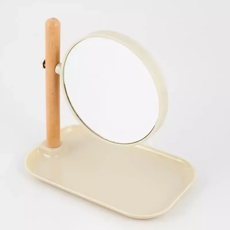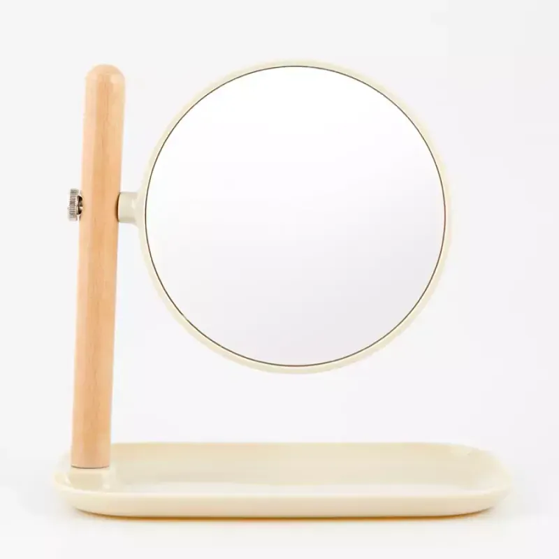 La estructura minimalista y las líneas suaves otorgan un aspecto sofisticado, mientras que su forma redonda ofrece una vista amplia y clara del rostro. El ángulo ajustable permite personalizar la inclinación para lograr la mejor visión en cada momento, ya sea para maquillaje, cuidado facial o simplemente para prepararse para el día. La base sólida asegura estabilidad en cualquier superficie, lo que aporta confianza y comodidad en el uso diario.