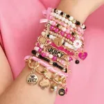 ¡Ponte el brillo! Esta elegante caja de almacenamiento contiene todos los elementos necesarios para hacer 18 pulseras Juicy Couture™. Los charms signature Juicy adornarán pulseras hechas en 3 técnicas para agradar a los jóvenes fashionistas que quieran desarrollar sus habilidades de diseño. Disfruta de 467 cuentas y amuletos listos para montar, y cuando termines la fabricación del día, guarda todos los materiales restantes en la vitrina. Llévalo siempre que te toque creatividad. Este set de pulseras es una idea genial para preadolescentes que hacen manualidades, ya sea para una fiesta, un cumpleaños o simplemente porque sí. Fomenta la autoexpresión y la creatividad en los niños. Perfecto para niños de 8+ años.