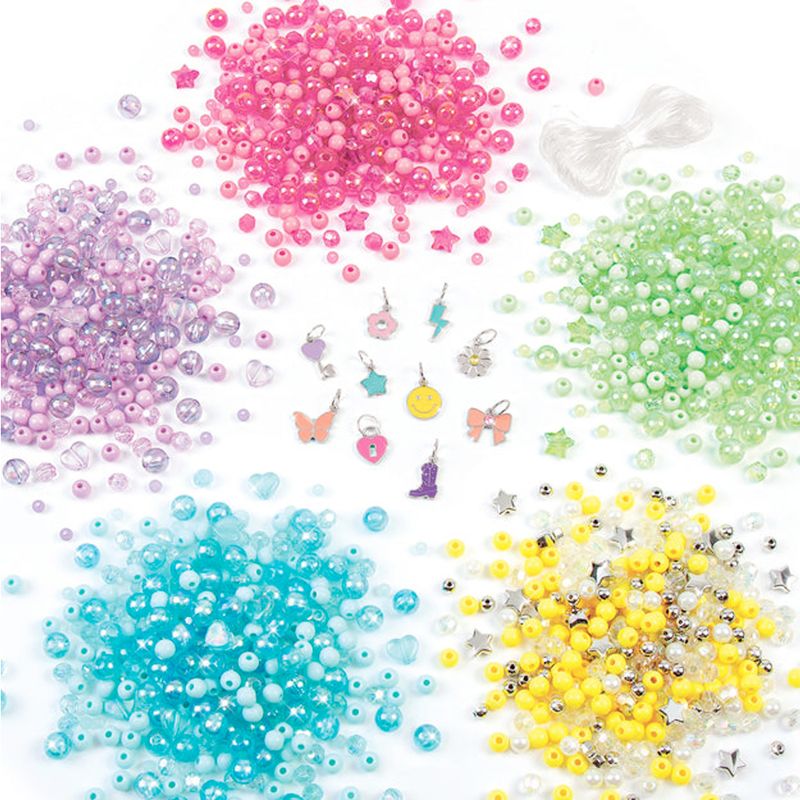Te espera una experiencia de joyería muy portátil! Haz más de 30 pulseras de la amistad con esta colorida colección de 1440 cuentas y amuletos. ¡Guarda los materiales en la cómoda caja portátil para llevarlos en movimiento! Los niños tendrán muchos accesorios para intercambiar con viejos amigos o nuevos que conozcan mientras hacen manualidades, lo que convierte esta actividad ideal para una cita de juego. Este set completo incluye todo lo que los jóvenes artesanos necesitan para ser creativos sobre la marcha, incluyendo cordón e instrucciones sencillas para guiar a los fabricantes de pulseras. Sigue ejemplos de patrones o creaciones libres. Este set es una idea de regalo genial, ya sea para una fiesta, un cumpleaños o simplemente porque sí. Perfecto para niños de 8+ años.