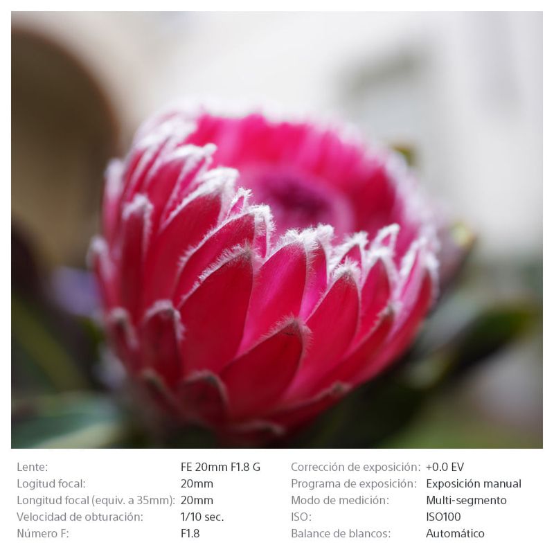 Aparte de que 20 mm es una distancia focal fantástica para selfis, esta lente tiene una distancia focal mínima de solo 0,19 m al usarla en modo AF e incluso de 0,18 m al enfocar manualmente. Es una opción fantástica para el montaje en estabilizadores o empuñaduras, ya sea para capturar selfis u otros objetos.