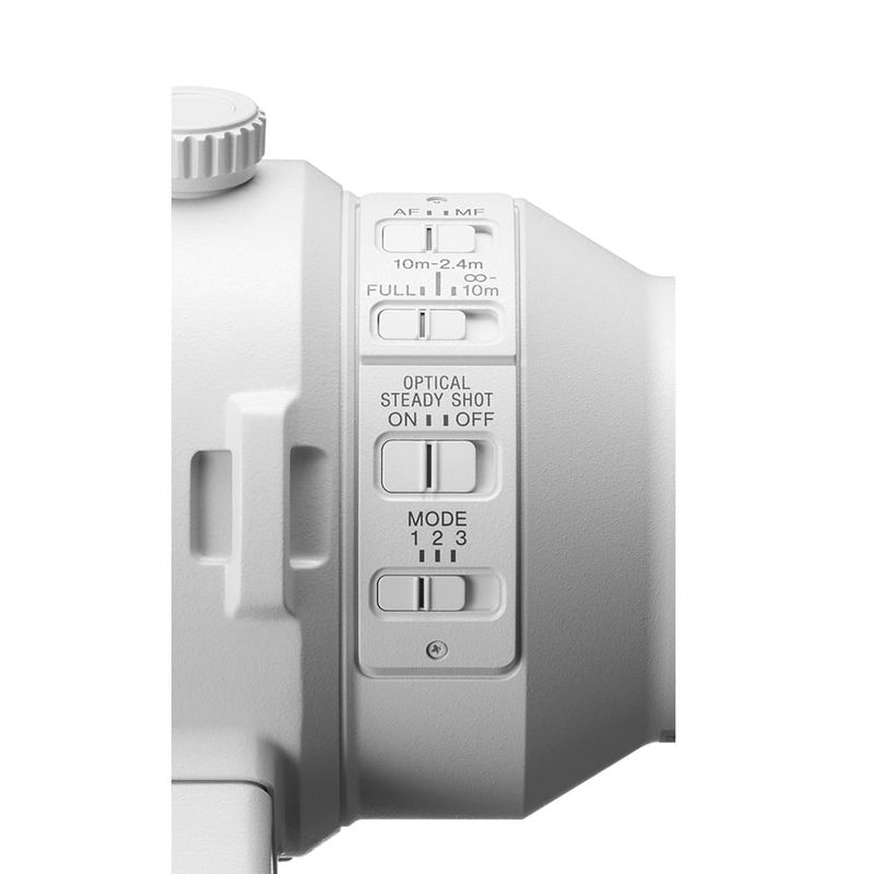 El interruptor de limitador de distancia de enfoque permite limitar la distancia de enfoque automático del objetivo a 2,4 en 10 m, 10 m a infinito, o enfoque automático de rango completo sin límite. En ciertas situaciones, esto puede acelerar el enfoque automático, ya que evita que el objetivo enfoque a sujetos que se encuentran más allá del rango especificado.