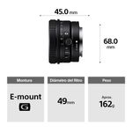 Montura tipo E con formato Full Frame, Lente G prime gran angular, Imagen de alta calidad y objetivo de excelente diseño con un funcionamiento intuitivo