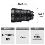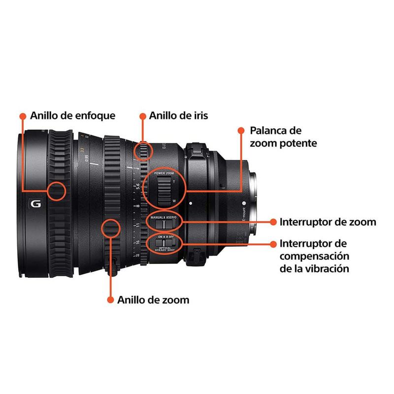 Montura E, formato Full Frame, Lente G de Sony de zoom estándar, Diseñado para capturas de video profesionales