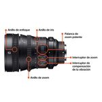 El primer accionamiento RDSSM (motor de ondas supersónicas de accionamiento en anillo) del mundo acciona una lente diseñada para la grabación de videos que consigue un zoom extremadamente silencioso y fluido. El funcionamiento del iris también es estable y silencioso. Los anillos de control independiente para zoom, enfoque e iris están incluidos. La velocidad del zoom se puede controlar de manera precisa en una amplia variedad, con capacidad de inversión de la dirección de rotación del zoom.
