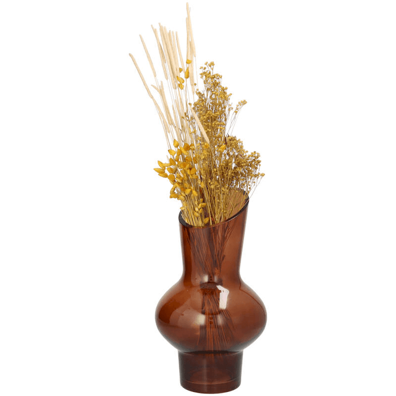 Descripción: Este jarrón de cristal marrón de diseño contemporáneo es perfecto para darle un toque elegante a tu hogar. Con sus medidas de 17x17x30 cm, se adapta a cualquier espacio y resalta tus flores favoritas o puede ser un elemento decorativo único por sí solo.