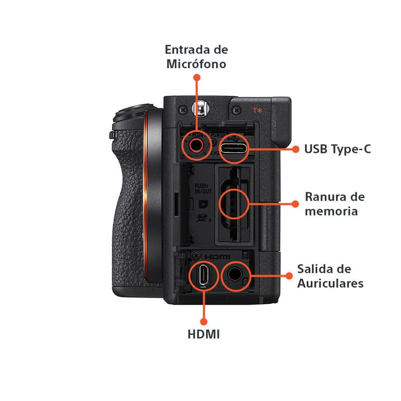 • COMPATIBILIDAD DE FLASH EXTERNOSistema de flash Sony a compatible con zapata de interfaz múltiple, adapta el adaptador de soporte para el flash compatible con soporte de accesorios con bloqueo automático