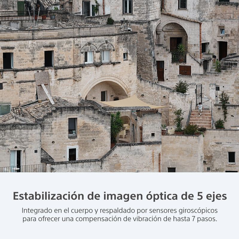 Una unidad de estabilización de imagen de alta precisión, sensores giroscópicos avanzados y algoritmos de estabilización de imagen optimizados detectan y corrigen con eficacia la vibración de la cámara. La estabilización de imagen óptica integrada de 7,0 pasos8 constituye una gran ventaja para capturar de forma manual. El nuevo algoritmo de estabilización ofrece una detección y un control precisos incluso en capturas de un píxel, de modo que aprovecha plenamente la resolución de 61,0 megapíxeles del sensor para revelar los detalles más mínimos del sujeto.  [1] Balanceo ][2] Giro ][3] Inclinación]