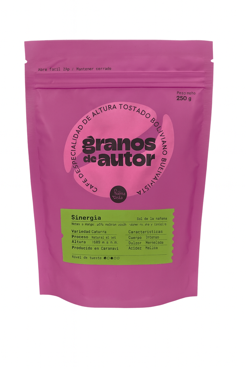-Sinergia contiene notas de mango, piña madura, cacao, azucar mores, y ciruelda.