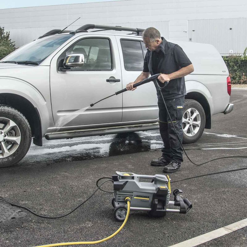 La HD 5/11 P es compacta, ligera y móvil. Detalles de equipamiento: asa de transporte, culata de latón, descarga de presión automática. Para servicio en horizontal y en vertical.