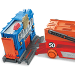 El Hot Wheels Mega Remolque GHR48 es un set que incluye un remolque y un vehículo, diseñado para ofrecer una experiencia de juego más grande. Las medidas aproximadas de este artículo son: