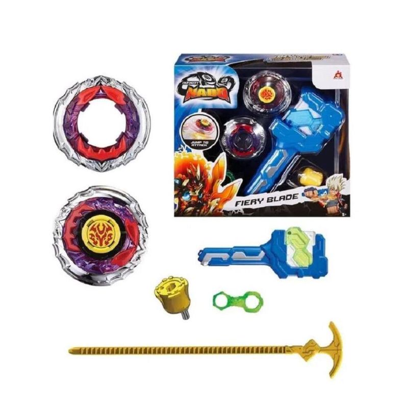 Trompo metálico de batalla con anillo de ataque incluido y lanzador. Perfecto para enfrentamientos intensos y juegos estratégicos