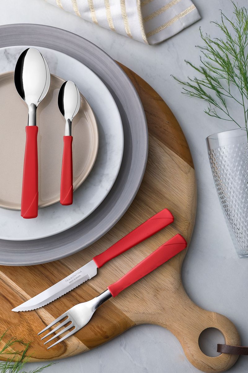 Jgo de cubiertos rojo 24pzas