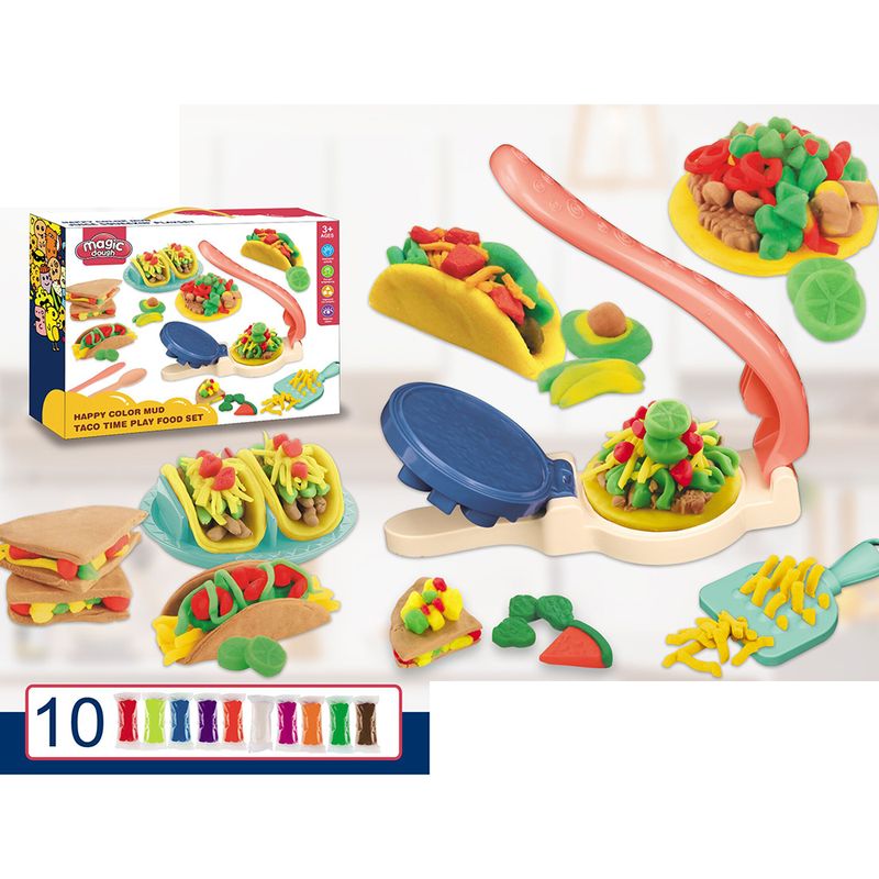 Este set incluye todos los ingredientes para preparar tacos con plastilina. Perfecto para juegos de rol y creatividad.