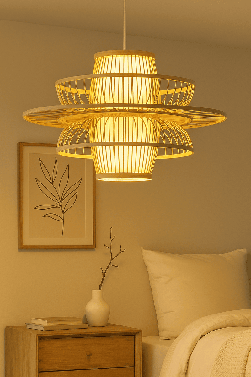 Lampara colgante bambu color madera 1xe27