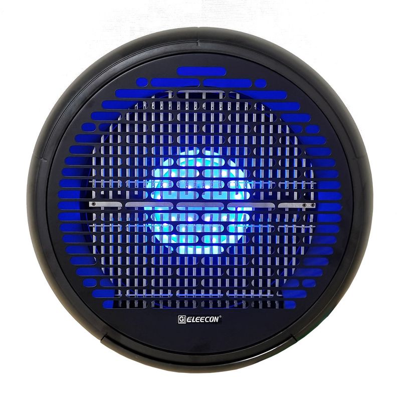 Funciona por medio de una luz que atrae insectos hasta una trampa que emite una descarga eléctrica, por lo que, al entrar en contacto con ella, los insectos son matados.