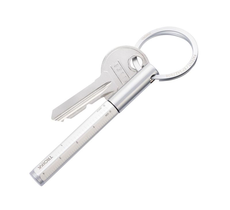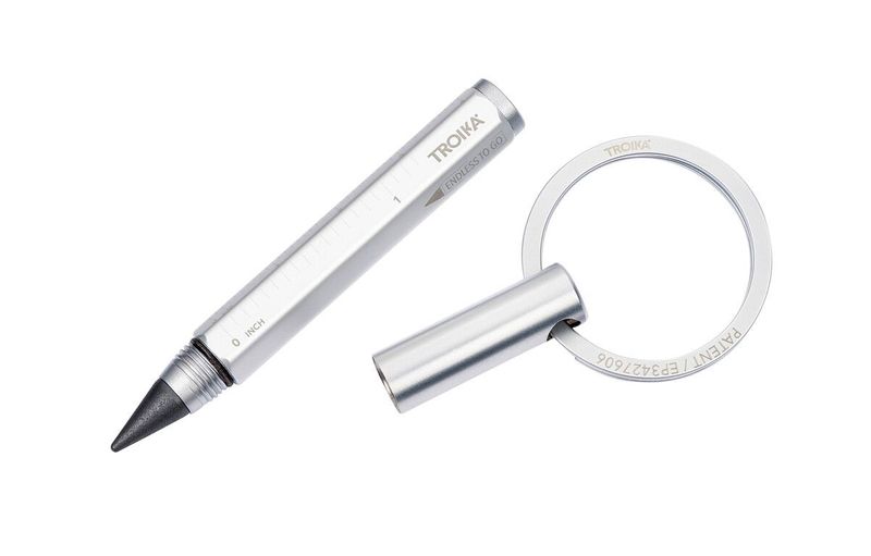 Lápiz multitarea y llavero con punta de escritura continua sostenible (longitud de escritura de aprox. 20 km), fijación rápida y sencilla para la llave gracias al mecanismo de apertura patentado (TROIKA NAIL GUARD), regla en centímetros/pulgadas, HB, borrable, no necesita afilarse, punta de escritura reemplazable, aluminio.