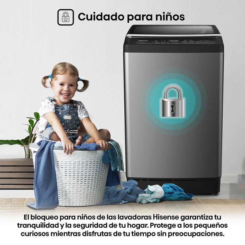 La Lavadora Hisense WT3J1023UT de carga superior con capacidad de 10 kg es ideal para hogares que