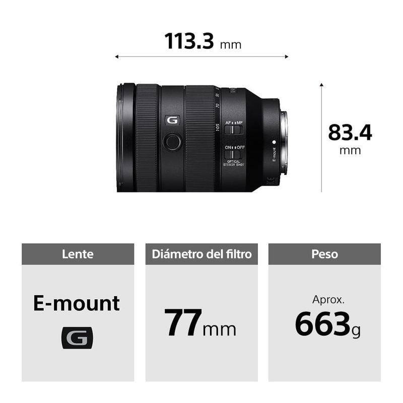 Montura tipo E con formato Full Frame, Lente de zoom estándar de G Lens, Apertura máxima F4 constante