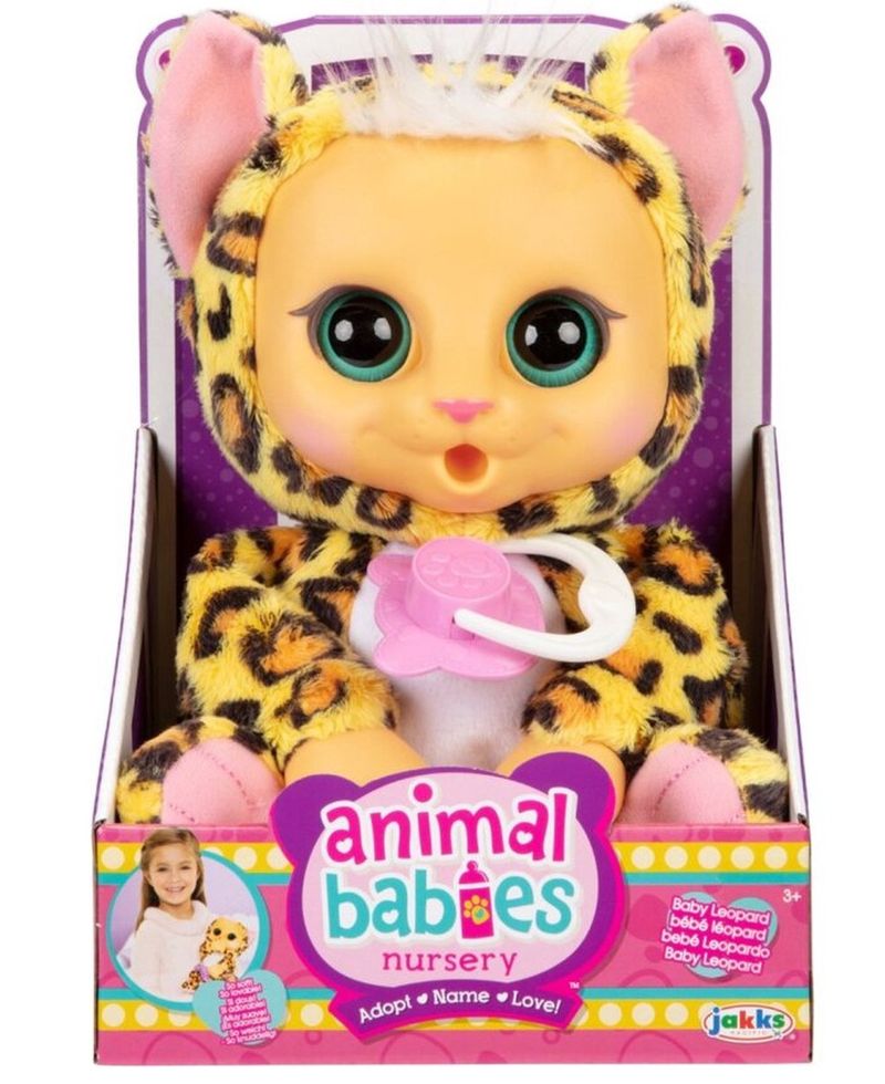 El Leopardo Animal Babies de JAKKS es un peluche interactivo, suave y tierno, diseñado para acompañar a los más pequeños en sus momentos de juego y descanso. Este adorable compañero cautiva con sus grandes ojos expresivos, su nariz suave y sus manchas realistas, brindando una experiencia de ternura e interacción que los niños adorarán. Es ideal para juegos, abrazos y actividades de cuidado simbólico.