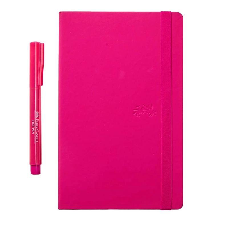 Presentamos el Creative Journal Punteado de Faber-Castell con 84 hojas en un encantador color rosado, acompañado de un bolígrafo fino a juego. La combinación ideal para quienes aman plasmar ideas con estilo y estructura.