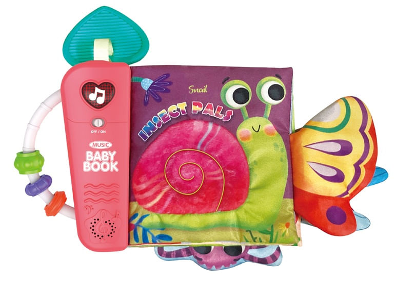 Libro de tela con sonidos y colores vibrantes. Enseña a los más pequeños sobre insectos de forma lúdica.