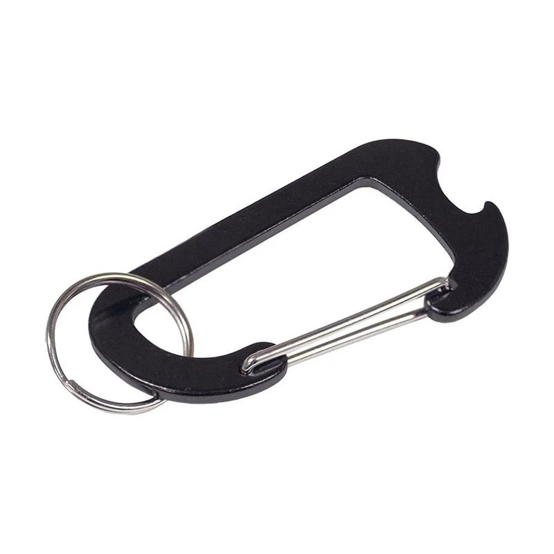 Lo que realmente distingue a este mosquetón es su abridor de botellas incorporado, un detalle práctico que te sacará de apuros en cualquier momento. Disponible en una atractiva gama de colores – Negro, Azul y Rojo – podrás elegir el que mejor se adapte a tu estilo personal.